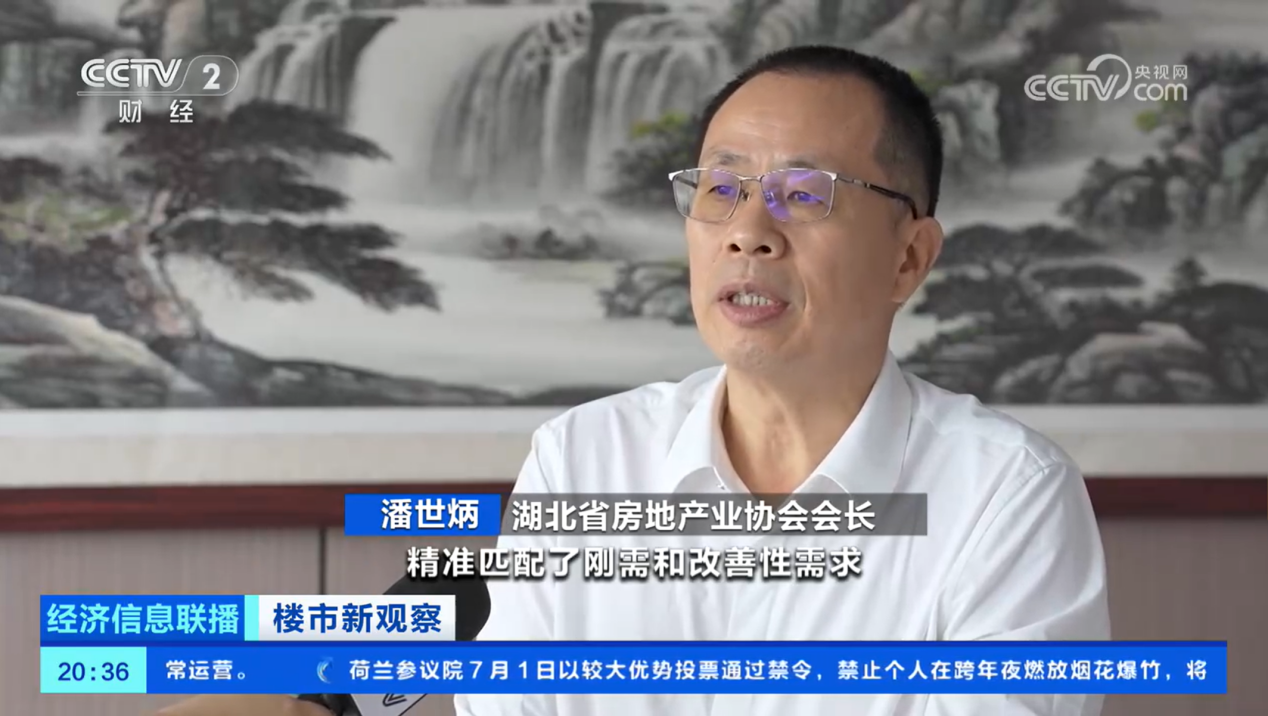 2025年7月3日,中央電視臺《經濟信息聯播》播出“湖北武漢:樓市新政有效拉動市場 6月份新房成交超1.2萬套”報道,湖北省房地產業協會會長、永業行董事長潘世炳接受央視記者采訪。